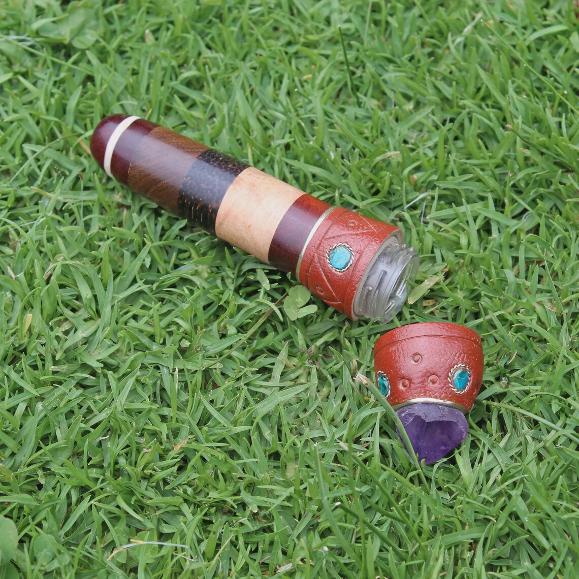 Unique Hapeh Bottle | Made of Palo Sangre, Palo Santo, Chonta Wood, Madera Negra, Peruvian Turquoise and Ametyst