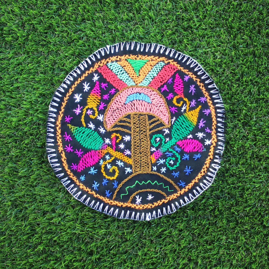Shipibo Altar Cloth made by Shipibo Female Shaman | 21 cm in diameter | Traditional Shipibo Embroidery | Ayahuasca vision pattern